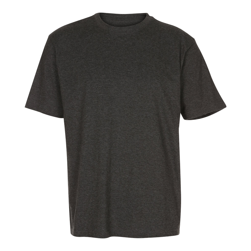 Klassisk rundhalset t-skjorte laget av økologisk bomull av god kvalitet med 1x1 rib med 8% elastan. Den har nakkebånd og dobbeltsømmer. Produktet er forkrympet og enzymbehandlet.
